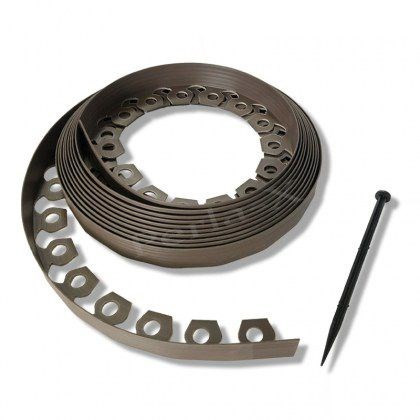 Elasztikus gyepszegély BARNA 3,8cmx10m 20db leszúrótüskével
