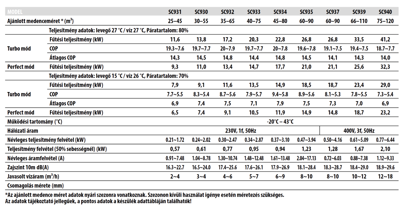 Az Aquaforte Mr. Perfect Turbo Tech hőszivattyú a medencefűtés új szintjét képviseli. Egyedi Pad-kialakítása, forradalmi Turbofan ventilátora és fokozatmentes DC inverter technológiája révén újradefiniálja a teljes iparágat.A saját fejlesztésű inverteres vezérlőrendszer és a különleges turbóventilátor kombinációja a felhasználási lehetőségek határait feszegeti. Az eszköz kiemelkedő hatékonyságot nyújt akár COP 20-as teljesítmény mellett is, miközben akár 30-szor halkabb működésre képes a hagyományos rendszerekhez képest.Ez a modell valóban négyévszakos használatra készült, -20 °C külső hőmérsékletig is megbízhatóan üzemel.