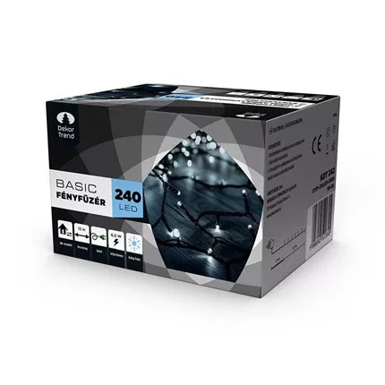 A legegyszerűbb fényfüzér kedvező áron. 240 LED található rajta, amivel alkalmas közepes és nagyméretű karácsonyfák, valamint párkányok, kandallók díszítésére. De IP44-es szigetelésű kábele miatt egyre többen használják négy évszakban, kültéren is.