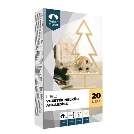 Ablakdísz, meleg fehér, vezeték nélküli, 39 cm, 20 LED - FENYŐ (KDE103)