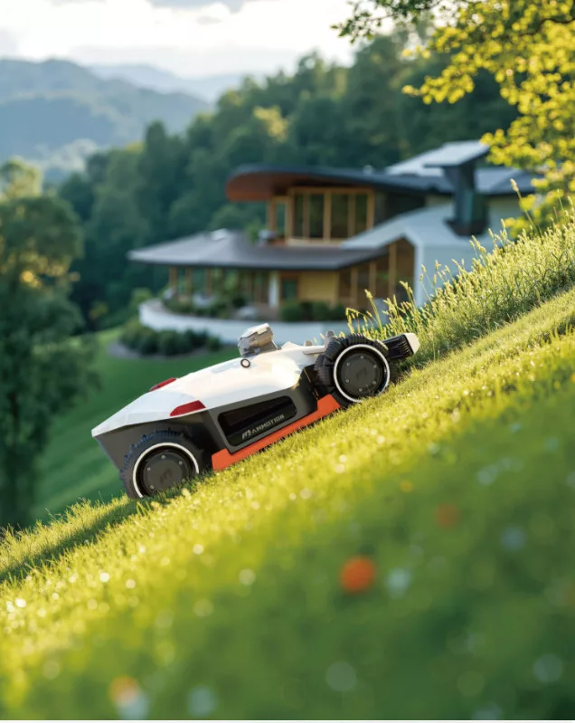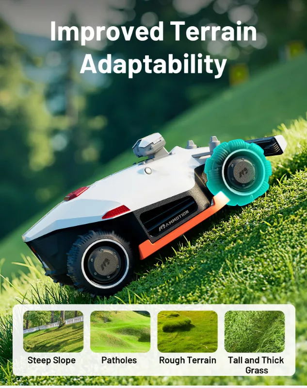 Az erőteljes AWD összkerékhajtás akár 80%-os (38,6°) emelkedőn is stabilan dolgozik, így a robot a dombos, változatos terepen is magabiztosan mozog.