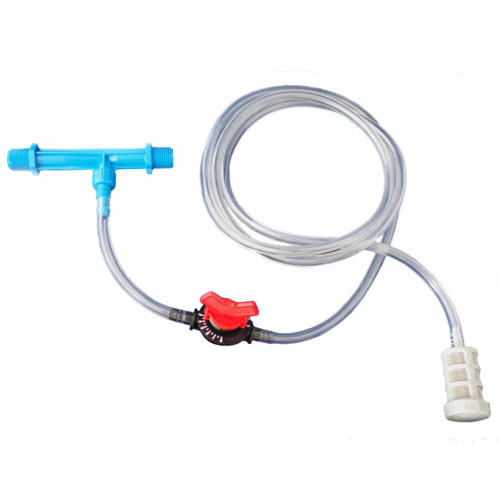 Venturi tápoldatfelszívó 1/2" 0,4-0,8m3/h átfolyáshoz szűrővel, szab. csappal, csővel
