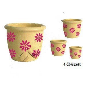 Agyag hordó szett - Kézzel festett - Kézi megmunkálású - Fagyálló Átmérő x Magasság: 34 x 27 cm 27 x 21 cm 21 x 17 cm 16 x 13 cm Súly: 13,5 kg Színe: fehér alap / pink virág