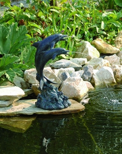 Delfin pár, 26,5 x 21,5 x 51 cm Bronzszínű