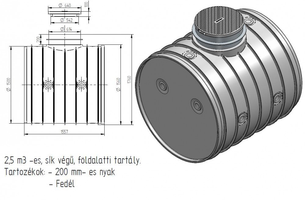 Földalatti tartály 2,5m3-es lépésálló 1500x1500 álló/fekvő hengeres